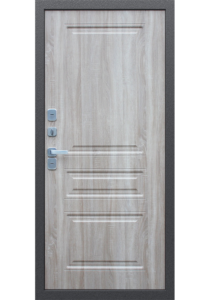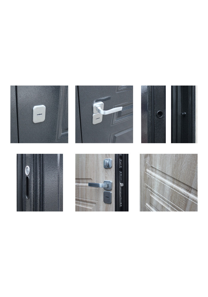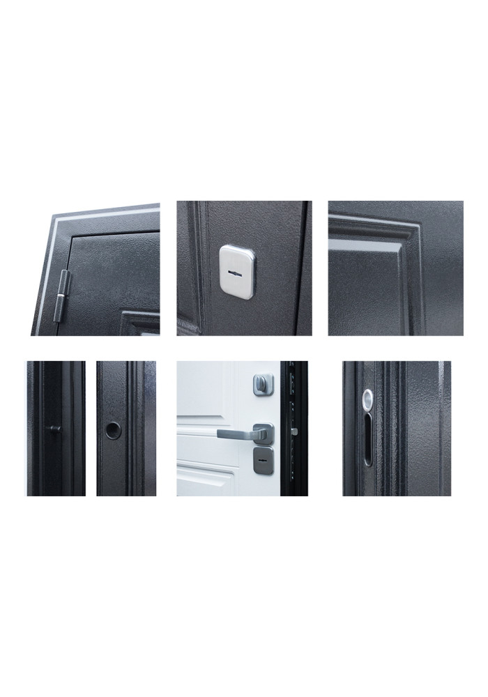 - Наружный лист металла: Лист металла 1,5 мм. Декоративный штамп на металле. Порошковое покрытие. Наличник фигурный.